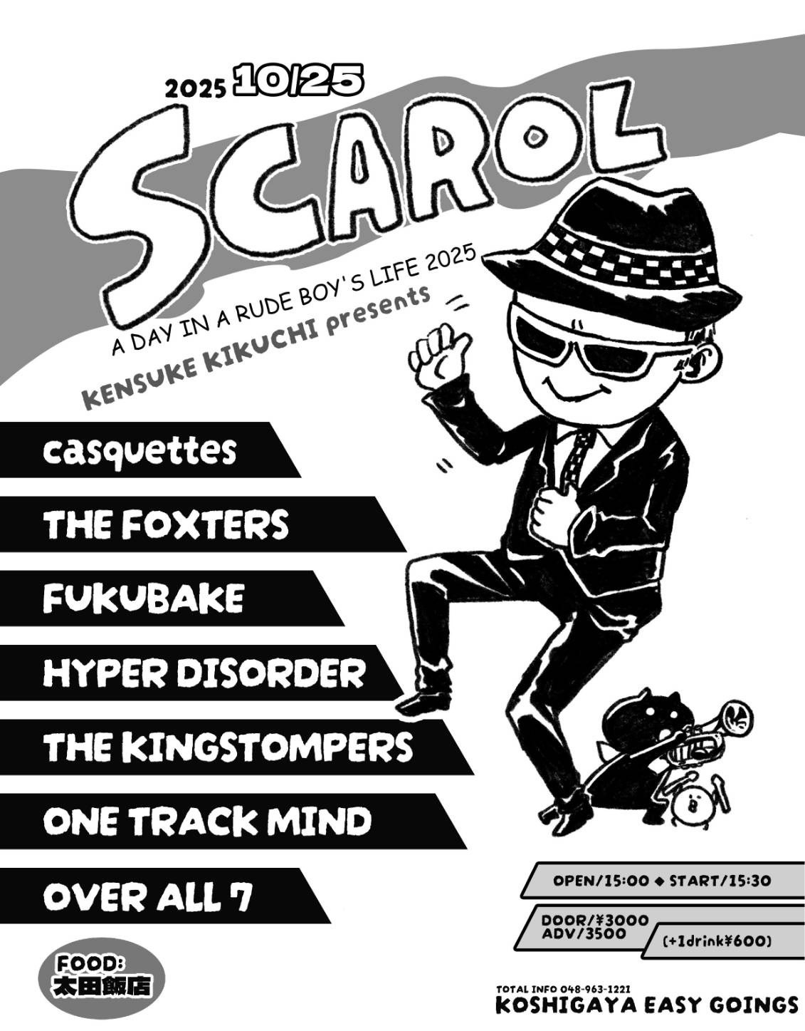 2025.10.25(SAT)@越谷EASYGOINGS SCAROL SCHEDULE 2025.07.24 2025.10.25(SAT)@越谷EASYGOINGSSCAROL FUKUBAKETHE KINGSTOMPERSOVER ALL 7ONE TRACK MINDHYPER DISORDERcasquettesTHE FOXTERS OPEN 15:00 / START 15:30ADV ¥3000 / DOOR ¥3500(+1drink¥600)